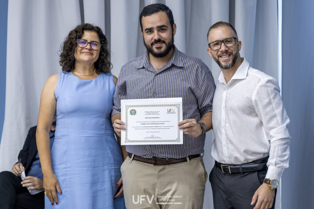Na ocasião, o aluno André Luiz Feijó dos Santos (Imagem 1), do curso de Ciência da Computação, recebeu a homenagem concedida pelo CCE, em reconhecimento ao seu desempenho e dedicação durante o curso. A cerimônia destacou não apenas o mérito acadêmico, mas também o esforço, a perseverança e o comprometimento dos formandos ao longo da graduação.